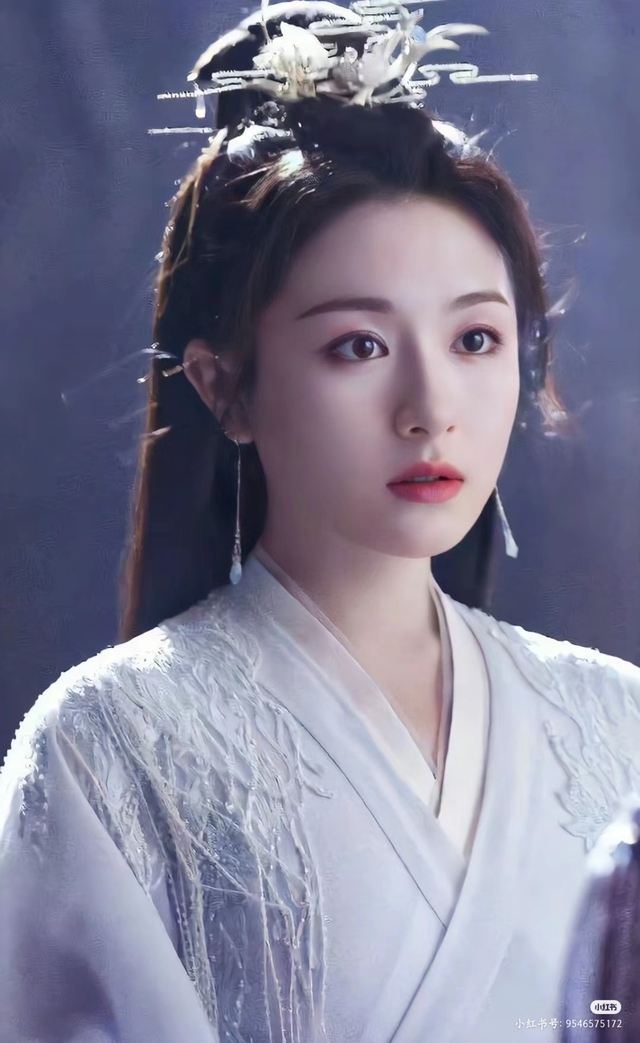 她的美丽如同一幅细腻的古风画卷,温婉如玉,端庄中透着无尽的韵味。那一抹活泼的灵动,在她眼眸深处闪烁,犹如春水荡漾,令人心动。她身着一袭雪白的华服,仿佛月光下的仙子,衣袂飘飘,尽显古典之美。头饰上的珠宝熠熠生辉,与她盘起的秀发上那支精巧的发簪相得益彰,增添了几分尊贵之气。她的妆容淡雅而不失生动,如水墨画中的几笔点睛,清晰的眉峰、柔美的眼影和那抹亮丽的朱唇,都恰到好处地衬托出她的天然丽质。背景中,淡淡的蓝光如梦似幻,将她笼罩在一片宁静而神秘的氛围之中,更显得她如诗如画,引人遐想。