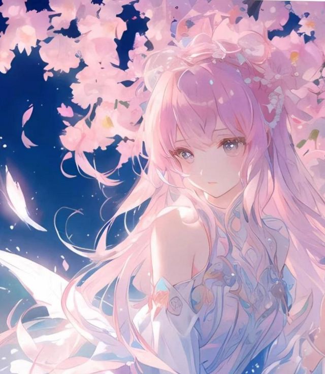 她一头粉色的长发,微卷的刘海下是那双充满灵气的眼睛,仿佛闪烁着万千星辰。鼻梁高挺,唇红齿白,皮肤白皙,犹如精致的瓷器。