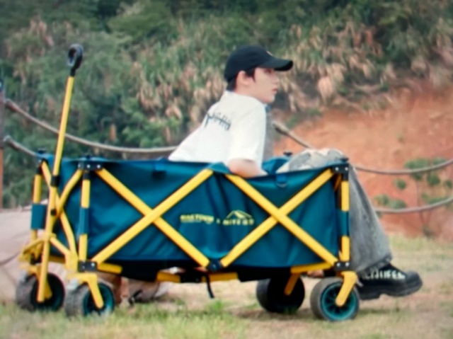 杨幂和敏涛姐还在争论要不要歇一会的时候,小丁一屁股坐在了行李车里
