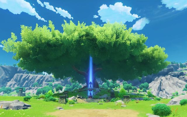 派蒙“作为一名合格的向导,就让我来介绍一下。[蒙德英雄的象征]就是那棵非——常显眼的大树!”