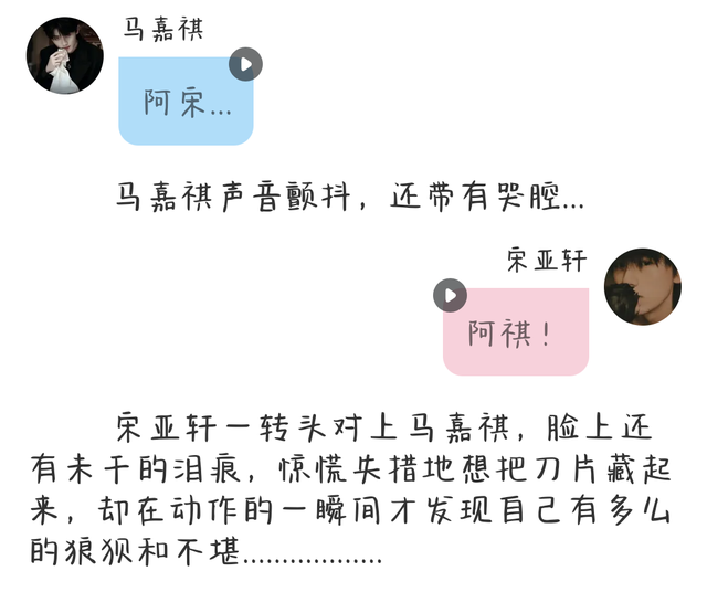 宋亚轩早就忘了自己不开心的事情了,满脑子都是马嘉祺往自己手臂扎三刀的画面……