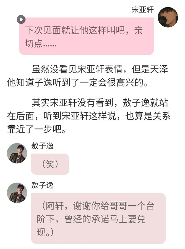 (听子逸说他跟马嘉祺很要好,这几天特地蹲点在马嘉祺公司对面街的咖啡厅。终于给他盼来了小宋的身影。还是和小时候那般可爱。脚不受控的离开了座位,但是一想到前几天才给人气晕了,又无奈的坐了回去,顿时感觉鼻子很酸,脸上怎么湿湿的……)