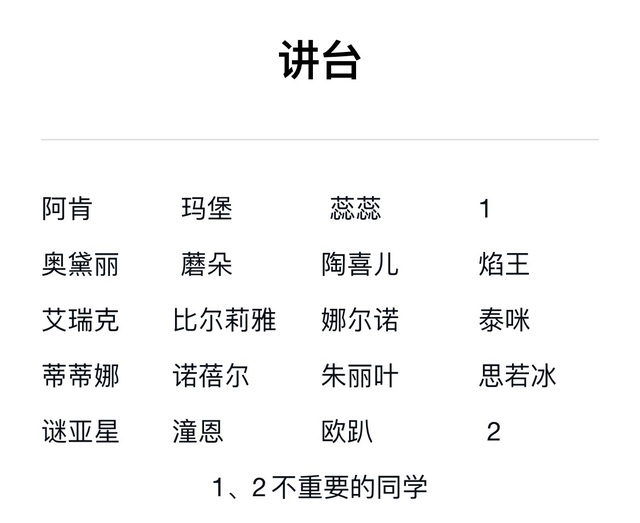 (座位表,人物有点多,没怎么记住,然后又特地翻了一下人物表,后期会有老人物回归,座位先暂时这样)