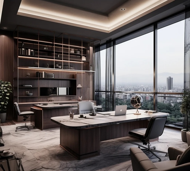 马嘉祺办公室里有黑色亮光玻璃,山纹橡木黑实木地板,装的是感应氛围灯