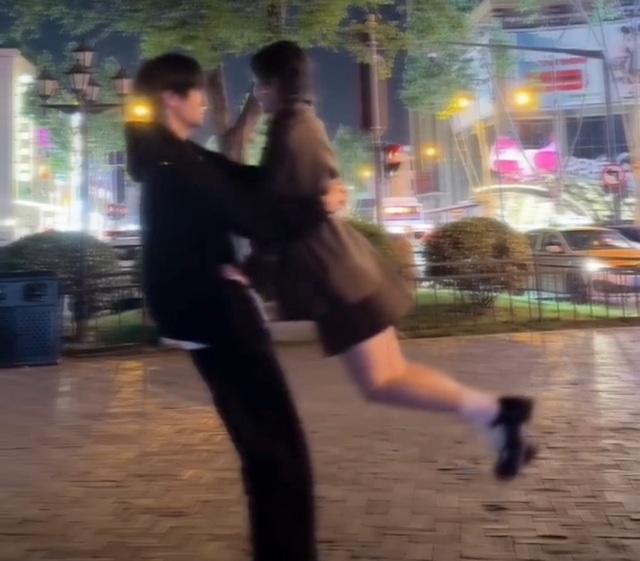 #宋雅萱快走啊!(一手拿着扇子一手牵着刘文就跑)