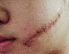 脸颊被泪水打湿,出现一道很深的伤疤出现