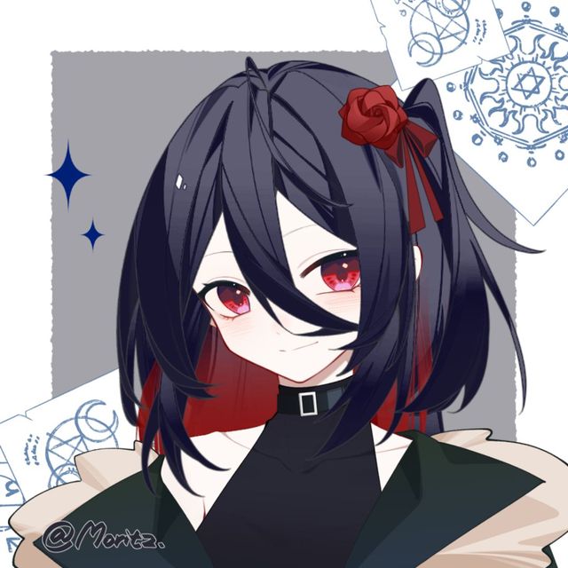 这是女主外貌,头发是外层黑色,内层红色的,扎着斜马尾