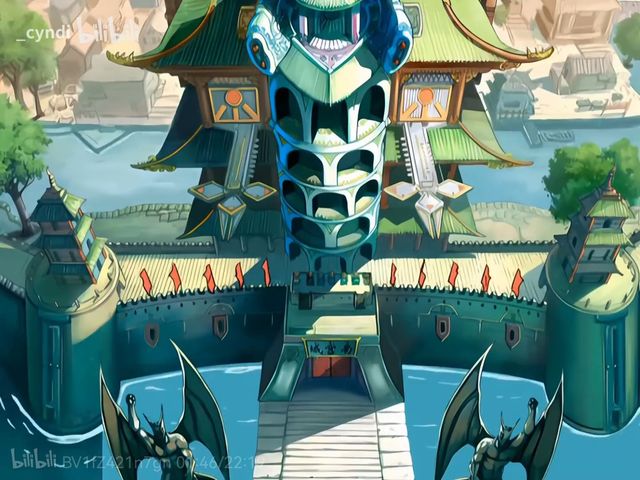 环绕的护城河波光粼粼,与一座雄伟的吊桥相连,通往那座城堡内。巨大的城堡矗立眼前,然而高耸的城楼上竟空无一人,城门也大敞四开,仿佛在邀请旅人进入。唯有两座护法石雕屹立门前,它们犹如忠诚的卫士,默默地注视着每一个经过的行人。