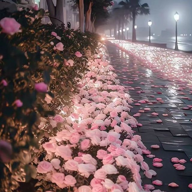 车辆很少,灯路为你照耀着…一个长相极为好看的女生悠闲的走在路边上…