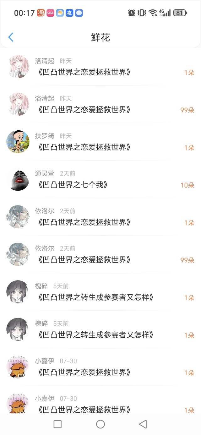 作者感谢以上小可爱们的鲜花