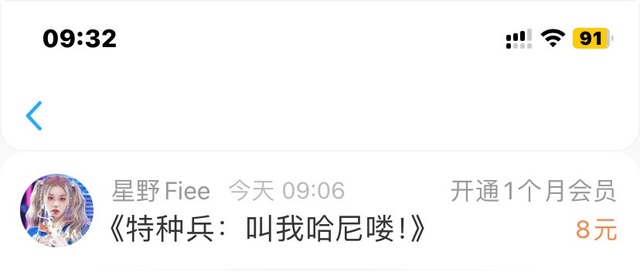 感谢星野Fiee宝贝开通一月会员