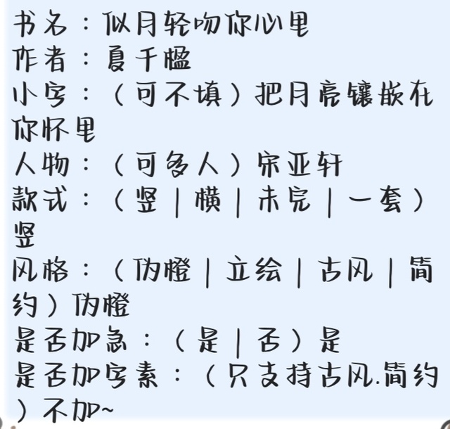 有偿封:《似月轻吻你心里》
