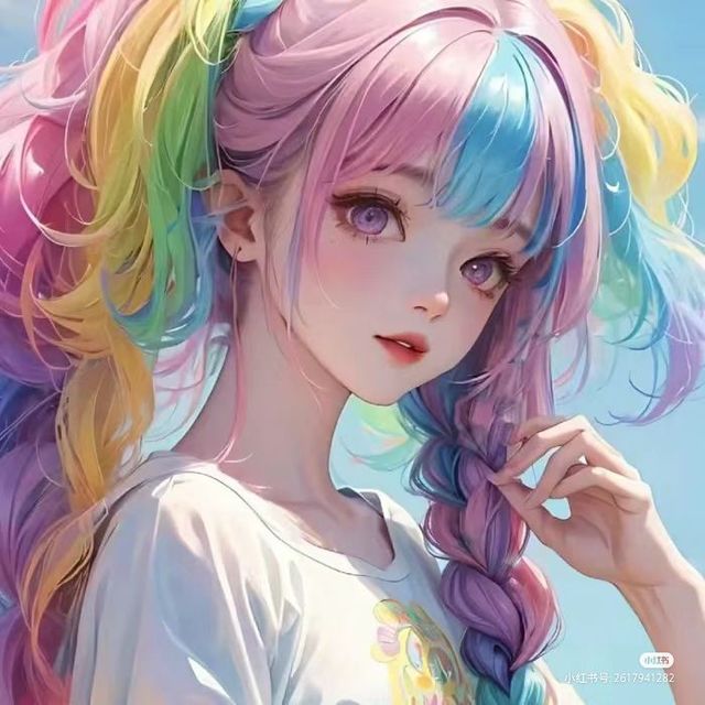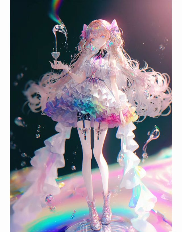 她的发色不仅全部变成了彩色,就连裙子都闪耀着彩光
