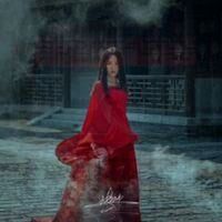 王座之上,女主身着大红色血袍。洁白而修长的双腿暴露在空气之中,舌尖轻刮过虎牙。