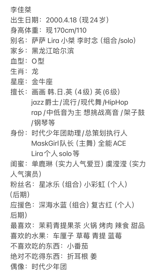 别名:萨萨 Lira 小桀 李时念(组合/solo)