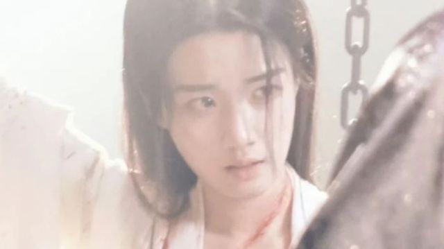 被质问的女子遍体鳞伤洁白的衣裙已被殷红的血染透 如瀑的秀发凌乱地披散在背后 许久 才微微张开已然干裂的嘴唇