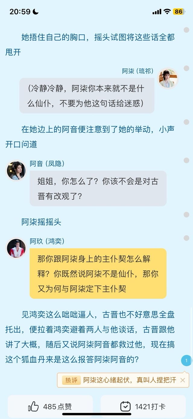 鸿奕见他这么生气,无非就是因为喜欢阿柒呗,古晋对此则是嗤之以鼻,表示自己已经心有所属,自己喜欢的是华姝,并不是阿柒这个小仙仆