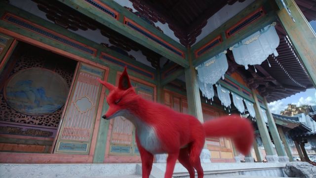 看见了一只狐狸,然后一旁柱子,琥喆正依靠在柱子上,面露笑意看向她们