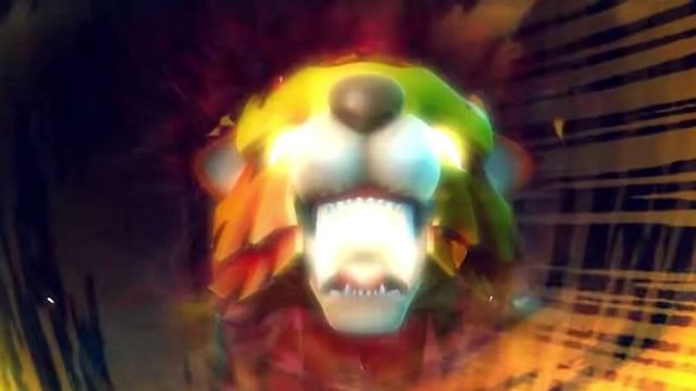 头上有一对冰封鹿角,后面有一条神木猿的尾巴,额头中间出现了一个王字,左手中有石甲熊的图案,右手中有神木猿的图案。注普通人根本看不到猪猪侠的样子