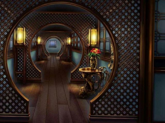 金顶石壁,绘着各种各样的鸟类图案,色彩斑斓。地板上铺着色调柔锦织缎绣的地毯,偶尔燃烧着几朵艳红色的火焰。纱幔低垂,营造出朦朦胧胧的气氛,四周石壁全用锦缎遮住,就连室顶也用绣花毛毡隔起,既温暖又温馨。陈设之物也都是少女闺房所用,极尽奢华,精雕细琢的镶玉牙床,锦被绣衾,帘钩上还挂着小小的香囊,散着淡淡的幽香。徽派建筑所共有的灰瓦白墙和高大的门楼,门楼墙壁有精致的雕花,屋顶的雕花更为精致美丽,整个建筑里有一套贯通的水系,再加上绿树成阴、群山呼应,让你有种置身仙境感。