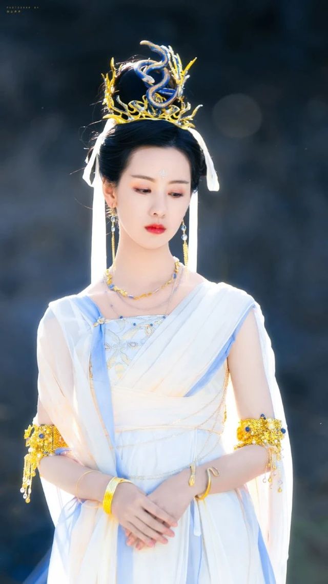 姜姣此刻身上是白纱裙,本就轻薄,金光镀在她的身上,脸上一片清冷出尘,如同刚刚入凡的仙女一样。