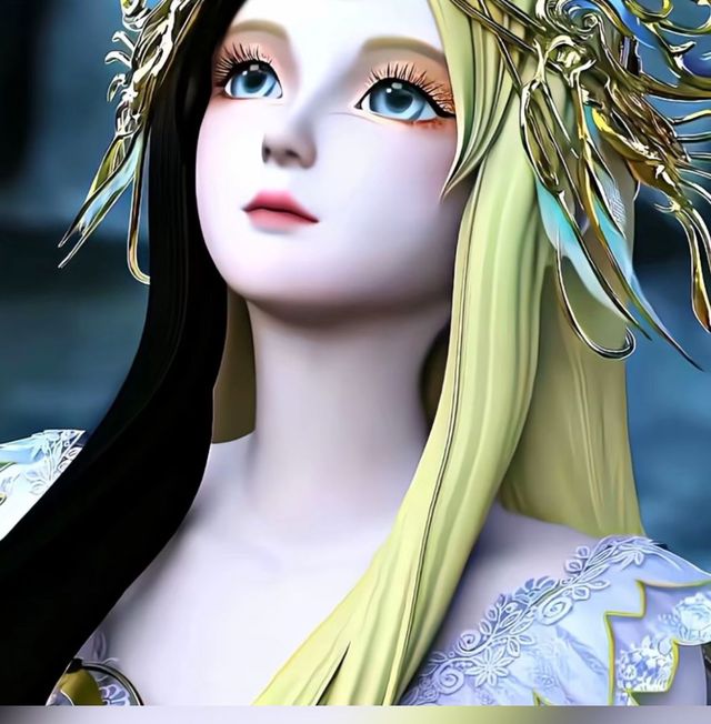 白光莹头顶羽翼般华丽发冠,中央镶嵌着一颗璀璨的红宝石,犹如夜空中最亮的星星。她眉心有一颗光痣,如同晨曦中的第一缕阳光,熠熠生辉。金灿灿的眼眸闪烁着无尽的魅力,她的身躯散发着温暖的气息,宛如晨曦的阳光洒在大地上,光芒四溢。