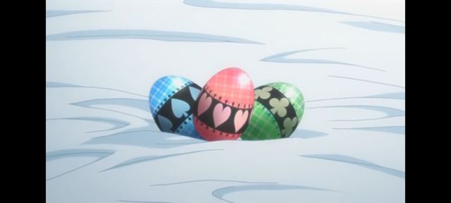猫耳男手举着蛋正打算走的时候,突然飞来一个森林花纹的蛋撞向猫耳男,导致两颗蛋没拿稳掉了下去