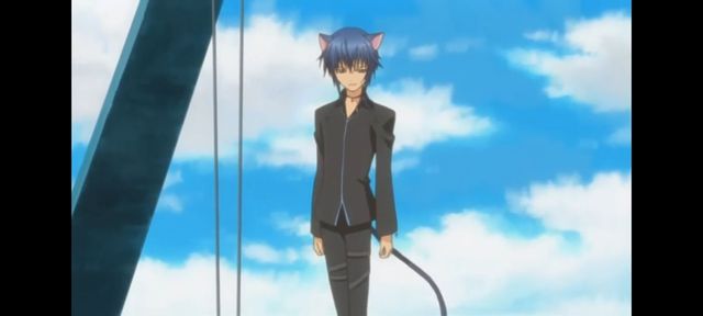 两人说着话,突然对面跳来一个男生,一个。。。有着猫耳,猫尾的男生
