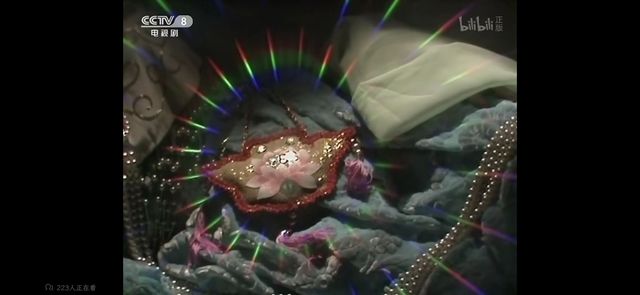 白骨精说完,利爪伸向女儿国国王,却不想被莲花荷包晃到了双眼