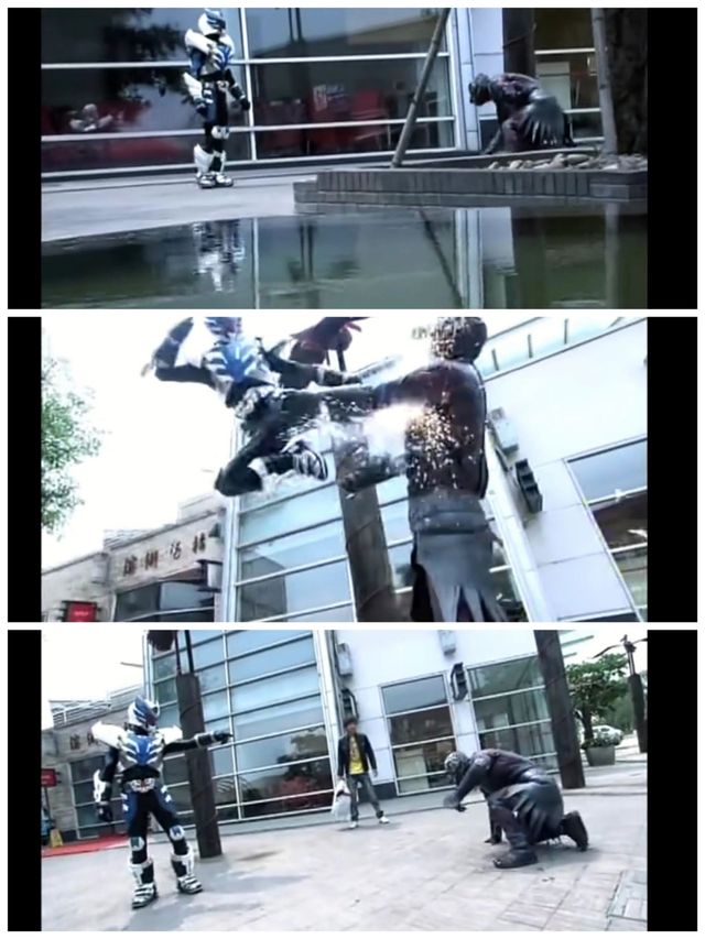 巴约比站了起来,冲向了飞影铠甲,又被踹了几脚。