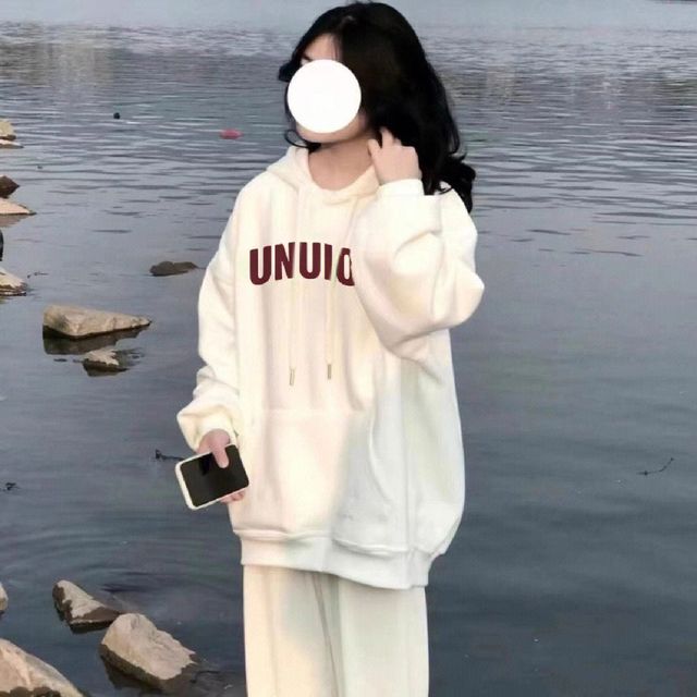 灰谷嘉穿了一件很简约的衣服上身是白色卫衣下身是黑色阔腿裤穿着黑白的运动鞋