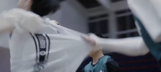 下一秒就看见姚浩南猛的揪住谈宋的球服