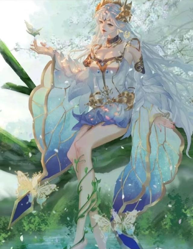 “星光化作翅膀,长久闪烁。”刹那间,花海之中弥漫了无数金色的蝴蝶,它们汇聚在一起,形成了一个洁白的茧,散发着白金色的光辉。我从茧中飞出,一条粗壮的藤蔓突然伸长并接住了我。蝴蝶环绕在我周围,纤细的藤蔓缠绕在我的腿上。