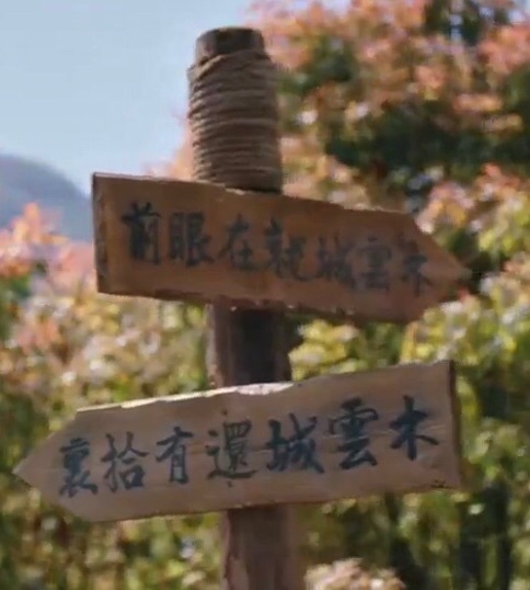 然后又有一位身穿一袭粉白衣戴面纱的女子在跑着,身后都是黑道的人,再在黑道后面的就是被三个奇怪的人追着的浅绿衣男子,他/她们两个也先后看到了路牌,也毫不犹豫的往前跑去