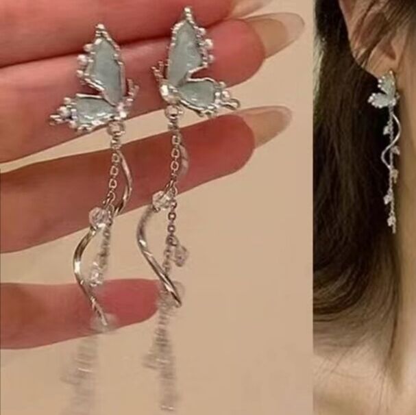 溜达到了一家奢饰品店,沈艺翎看中了一对耳坠很好看,是浅蓝色的,名为“蝴蝶恋”