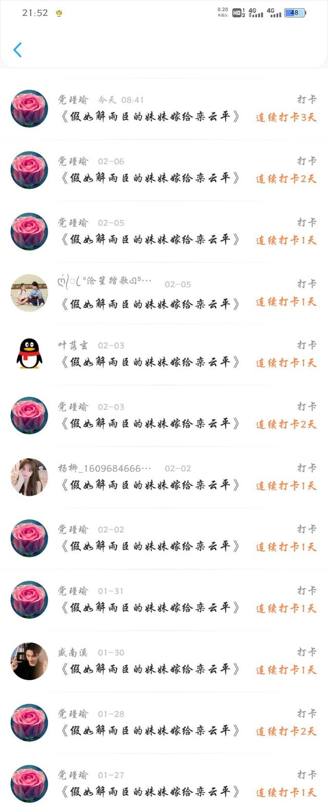 解雨妍今天这一章是给党瑾瑜贝贝的加更,谢谢贝贝连续八天的打卡感谢喜欢我会继续加油的
