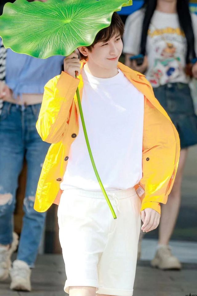 今日的成毅浑身上下透着一股少年感,一身纯白的T恤加白色短裤,外边套着橙色的外套,手上还举着一柄大大的莲叶,那是节目组安排的道具,此次的录制是宣传成毅的新剧《莲花楼》,他和另外两个男主来湖南一起录制这档节目,录制结束的三人道了别,便各自前往酒店,此次出行,他们三人的酒店在同一处,因为晚上还有一场直播活动在等着他们。