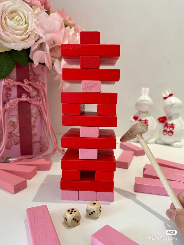顾希柠第一,叠叠乐,你们需要在规定时间内敲出“囍”字通关,需要两人同时进行,超出规定时间一个红包掷一次骰子。