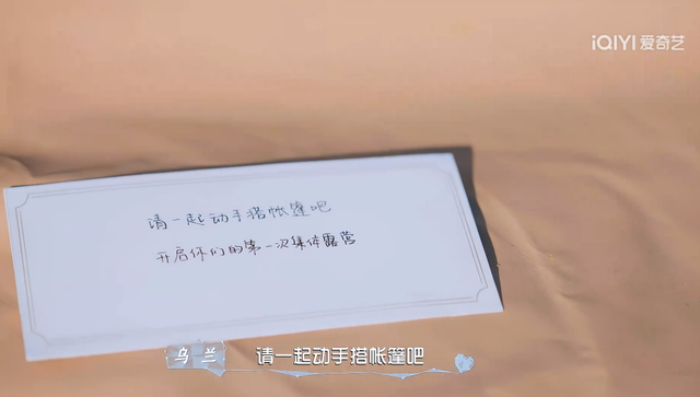 乌兰任务就是,“请一起动手搭帐篷吧,开启你的第一次集体露营”。