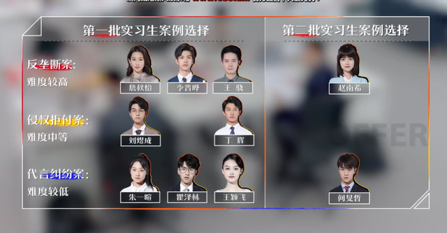新来的实习生赵南希选择了最难的奶茶反垄断,何旻哲则是选择了难度较低的代言纠纷案。