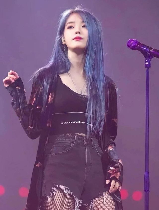 她站在舞台上唱着歌~