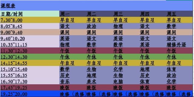 高二a班课表(不分文理)