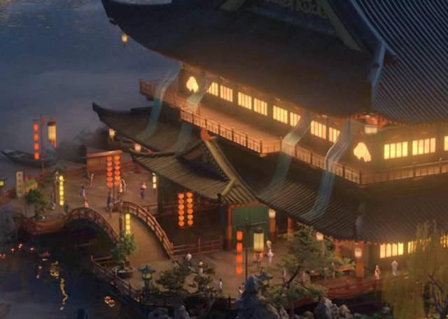 奇特优美的飞檐造型,灯火辉煌的喧嚣闹市,大街小巷人们身着长衫,头戴配饰,欢天喜地,和气融融。
