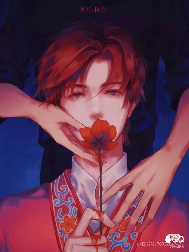 你看着她脸上满满的笑意轻笑了一声,目光转向了她手中的匕首,那上面刻的……蔷薇花,你垂下眸子语气低沉道