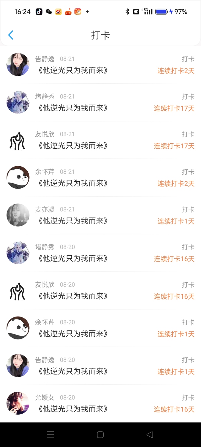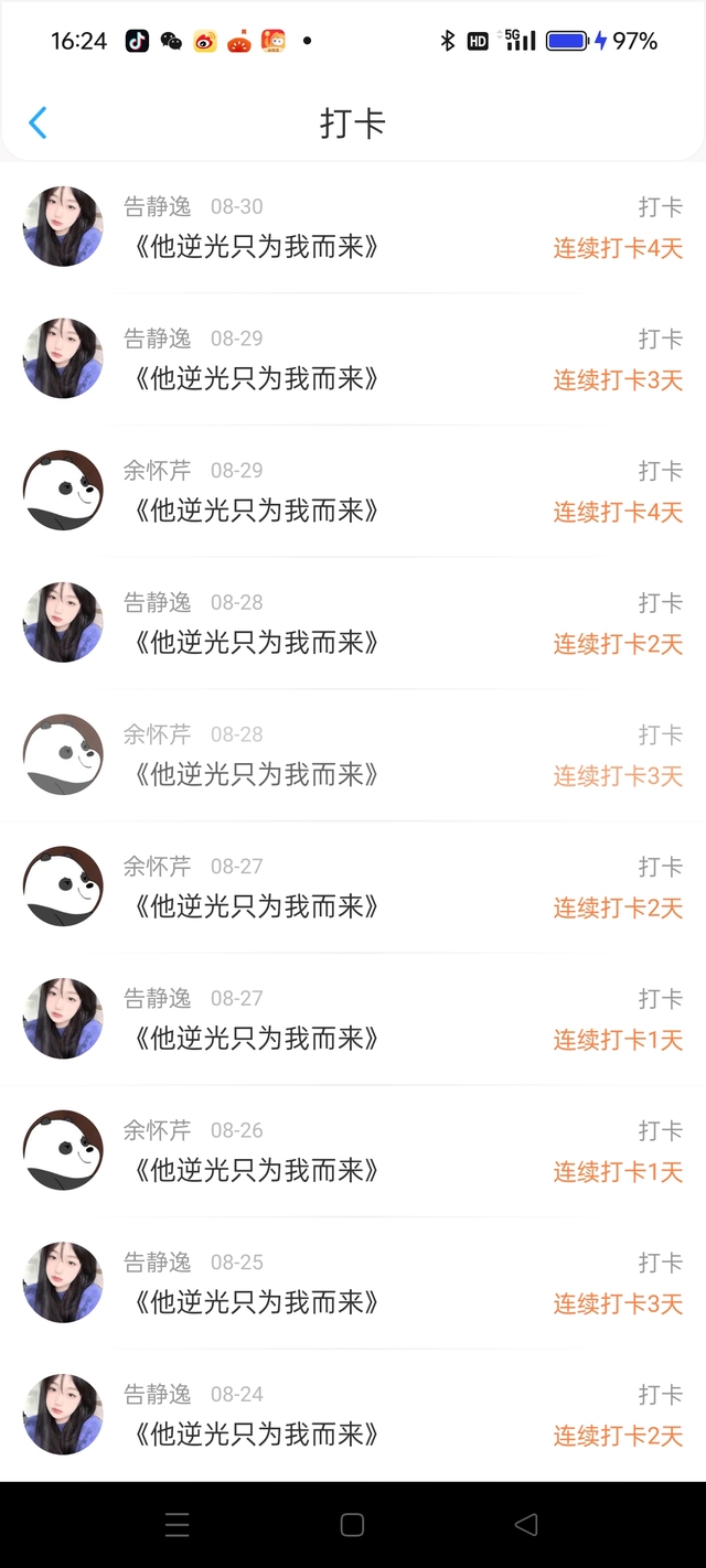 祺祺的阿芙(作者)秀秀、欣欣、允允,之前打卡了那么多天。