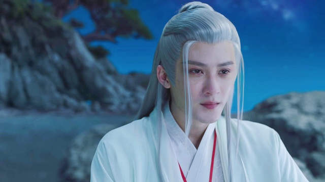锦觅靠着门框,看着他白衣白发、纤尘不染地穿行在染血的夕阳中。