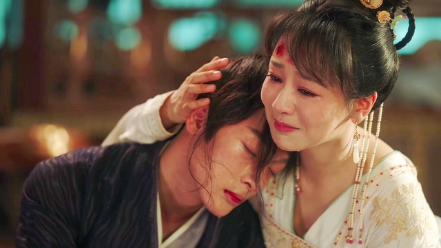 玱玹靠在小夭肩上,小夭不敢放声哭,她知道玱玹忍受着什么,只能心疼的哽咽,泪水布满她的脸颊。