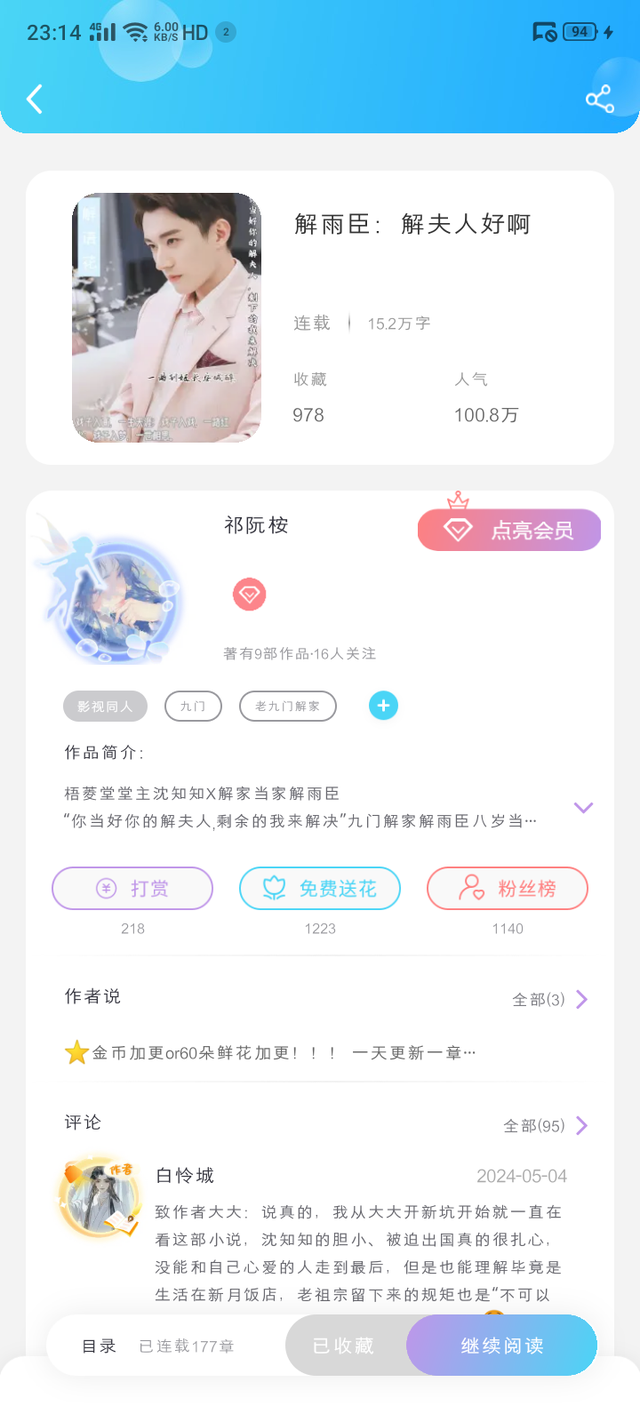 宋瑶“愿大家可以拥有属于自己的解雨臣,无论是书中还是他们的世界,解雨臣永远都在女主的身边”