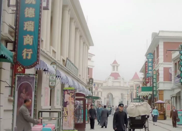 古老的街巷在夕阳下闪烁着金铜色的光辉,仿佛穿越了时空的隧道,将人们带入了一个昔日的繁华梦境。两侧,古色古香的建筑林立,绿色的琉璃瓦如波浪般起伏,红漆的木构架在岁月的洗礼下更显沉稳。一座座白色的装饰点缀在红色尖顶的塔楼上,如同点睛之笔,让这些建筑在静谧中透出一丝活泼。