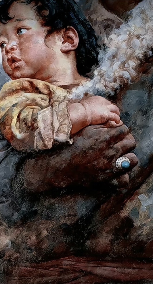 只见她悉心调色,颜料大胆地刷在画布上,再含蓄的调整,勾出五官,一幅油画的雏形便跃然纸上。
